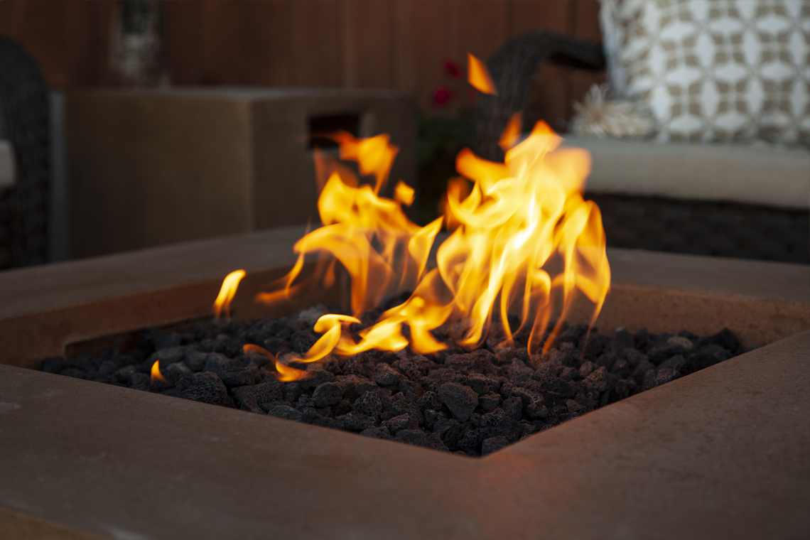 The fire table comes complete with one 25lbs. bag of ¾” lava rock. The naturally occurring volcanic rock creates a stunning contrast to the beautiful flames of any gas fire feature while the lava rock is heat resistant.